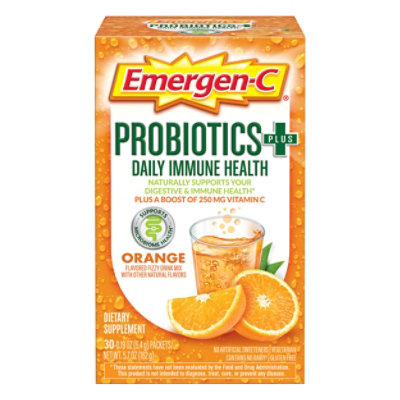 Emergen C Probiotics Plus Daily Immune Health Orange Drink Mix 30 0 19 Oz Vons
